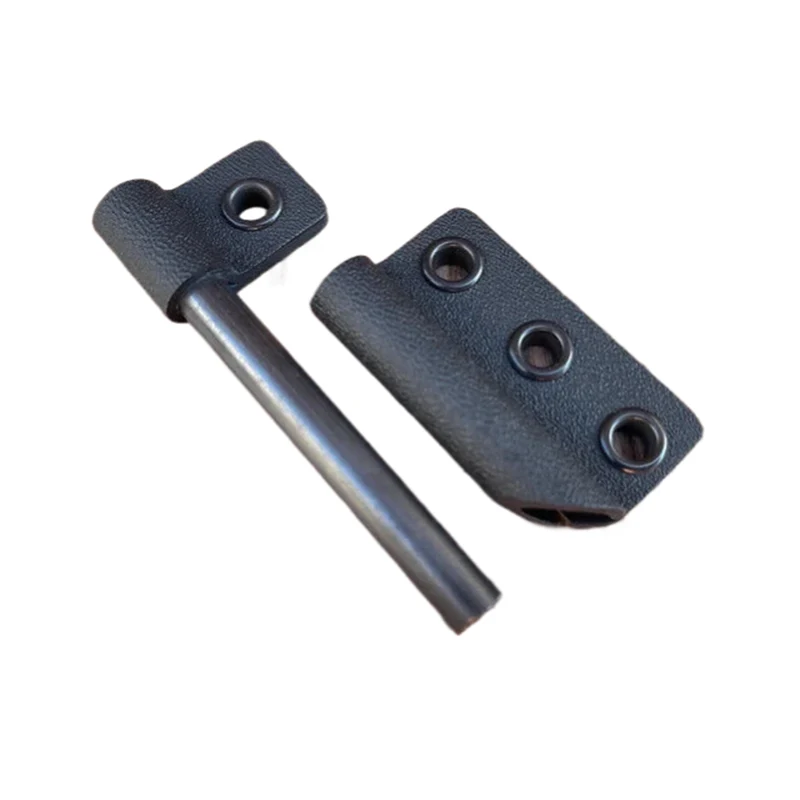 Die Kydexscheide ist in Taco-Form (Ösen auf einer Seite) und Pancake-Form (Ösen auf beiden Seiten) erhältlich. Zur Befestigung des Messers am Riemen des Rucksacks eignet sich der Klettverschluss ideal. Zusätzlich zur Kydexscheide kann ich einen Feuerstahlhalter anbringen, wahlweise mit Feuerstahl (80 mm oder 100 mm lang).