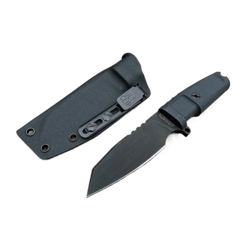 Die horizontale Kydex-Messerscheide und die Größe des Messers eignen sich gut, um es mit einem Multi-Lok horizontal oder vertikal am Gürtel zu tragen.