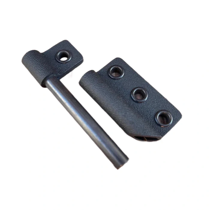 Die Messerscheidenhülle ist mit Ösen auf einer Seite und Ösen auf beiden Seiten erhältlich. Zur Befestigung des Messers am Riemen des Rucksacks eignet sich der Klettverschluss ideal. Zusätzlich zur Kydexscheide kann ich einen Feuerstahlhalter anbringen, wahlweise mit Feuerstahl (80 mm oder 100 mm lang).