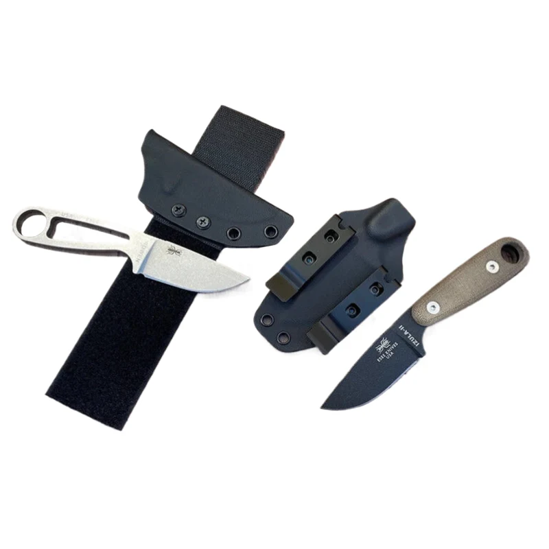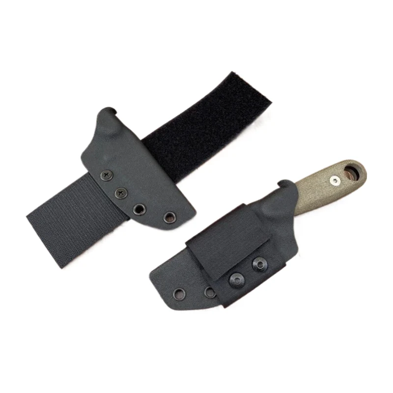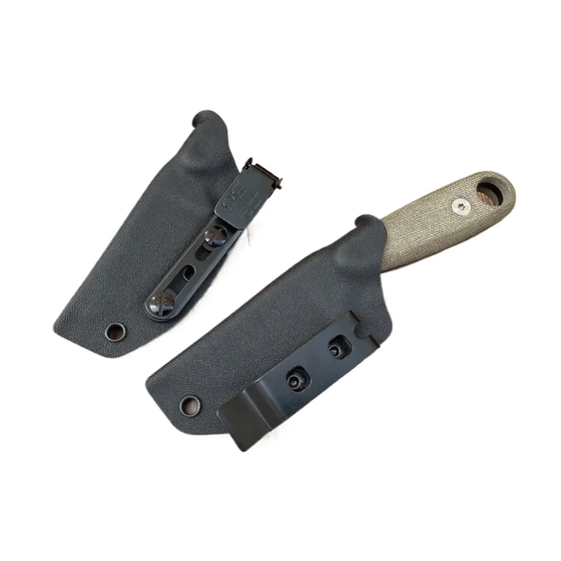 Die Kydex-Messerscheide ist einseitig geöst und beidseitig geöst erhältlich. Wenn Sie einen Clip bestellen, geben Sie bitte an, welchen Sie möchten.